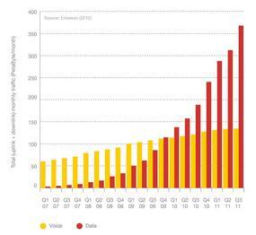 Ruch danych głosowych w sieciach mobilnych podwoił się w ciągu ostatnich czterech lat i nadal rośnie w stałym tempie. Dotyczy to w szczególności regionów, w których odnotowano znaczny wzrost liczby subskrypcji, takich jak rozwijające się kraje Azji.