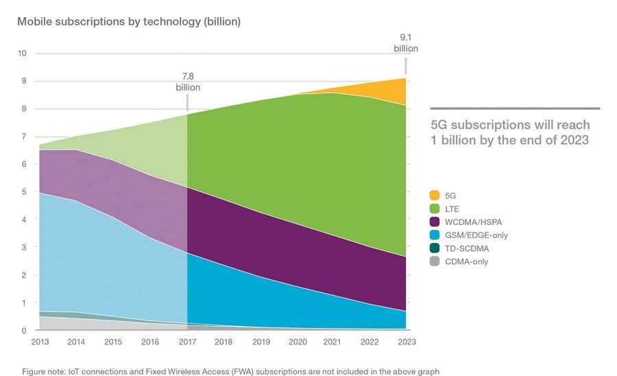 Prognozy Ericsson (NASDAQ: ERIC) przewidują, że do roku 2023 będzie miliard abonentów rozszerzonego mobilnego internetu szerokopasmowego sieci 5G. Prognozy te należą do kluczowych statystyk, opublikowanego dzisiaj, listopadowego wydania Ericsson Mobility Report.