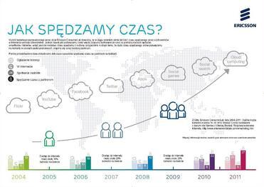 W 2004 r., w czasach przed Facebookiem i Twitterem, gdy tylko 10 proc. ludzi na świecie korzystało z internetu, Ericsson zapytał internautów, jak spędzają wolny czas. Odpowiedzieli, że 5 godzin tygodniowo poświęcają na internet, aż 15 godzin – na oglądanie telewizji, a 19 godzin spędzają ze swoimi partnerami. Kolejne 8 godzin to osobiste kontakty z ludźmi. Cztery lata później (w 2008 roku) z sieci korzystano już 8 godzin tygodniowo – tyle samo, co czas przeznaczony na kontakty osobiste. Spadło za to oglądanie telewizji, do 13 godzin tygodniowo. Relacje z partnerem zajmowały wciąż 19 godzin tygodniowo.