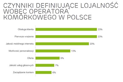 W Polsce lojalność polskich użytkowników determinuje w głównej mierze obsługa klienta i tzw. „pierwsze wrażenie” (najważniejsze kryteria dla 23 procent ankietowanych Polaków). Porównując do poprzedniej edycji raportu, znaczenie obsługi klienta maleje na rzecz jakości mobilnego internetu.