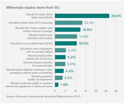 Potencjalne korzyści, jakie niesie ze sobą wdrożenie sieci 5G, powodują, że oczekiwania rynku są znaczące. Wspomniane powyżej badanie przeprowadzone wśród użytkowników smartfonów wskazuje, że młodzi millenialsi oczekują od 5G wyższych prędkości i lepszego zasięgu.